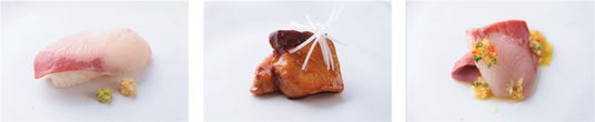 左からにぎり寿司・照り焼き・カルパッチョ