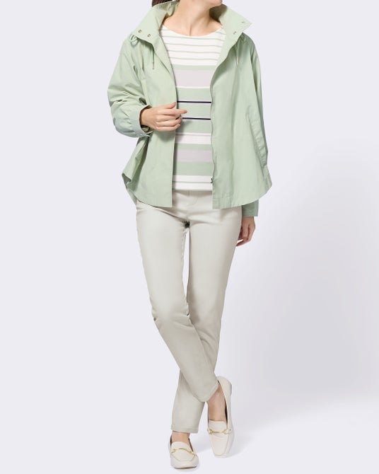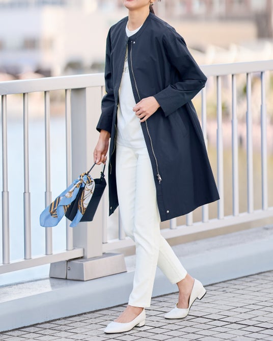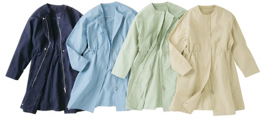 N+のアウターはご自宅で洗えてお手入れ簡単。はっ水加工も付いているため、花粉や雨の日にも安心してご着用いただける春のお出かけにぴったりのアイテムです。
