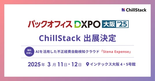 AIを用いた高精度な不正検知サービスやサイバーセキュリティサービスを開発・提供している株式会社ChillStack(本社:東京都渋谷区、代表取締役:伊東 道明、以下「ChillStack」)は、3月11日(火)から12日(水)にインテックス大阪で開催される「第3回 バックオフィスDXPO 大阪’25」に出展します。