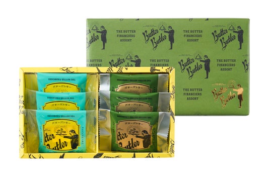 また、同日には「フィナンシェアソート」も、1番人気の「バターフィナンシェ」と季節限定「バターと抹茶のフィナンシェ」の組み合わせで新発売いたします。味を連想させる抹茶色で仕上げた包装紙で、大切にお包みしてご用意いたしました。それぞれを食べ比べできる詰合せは、ちょっとしたお手土産やご自分へのご褒美におすすめでございます。