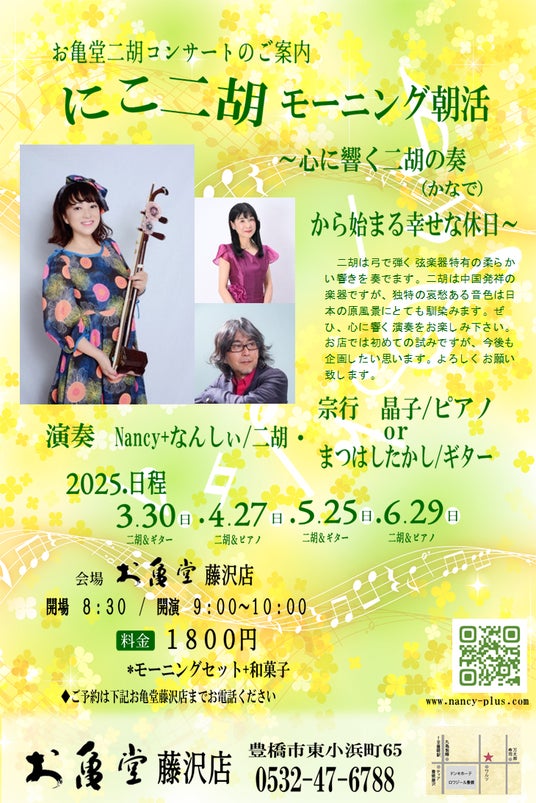 ~心に響く二胡の奏から始まる幸せな休日~お亀堂藤沢店の朝活で、二胡の生演奏をお楽しみください