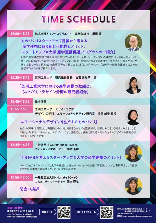 株式会社キャンパスクリエイトは、TIB FABとの共催のもと、2025/3/28にTokyo Innovation Base にて「ものづくりスタートアップに向けた産学連携のススメ」を実施いたします。