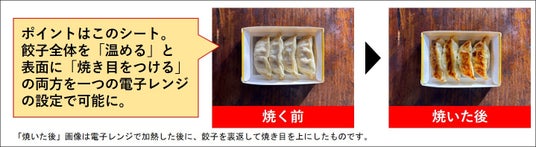 パッケージ内の紙トレーに、電子レンジで加熱すると短時間で食材に熱を通し、こんがりとした焼き色やクリスピー感をつけられる特殊加工の発熱シートを敷いています。発熱シート上に予め半調理済み※2の中華惣菜をのせて加熱することで、外はカリっとこんがり、中はジューシーな、まるでフライパンで調理したような焼きたての味をお楽しみいただけます