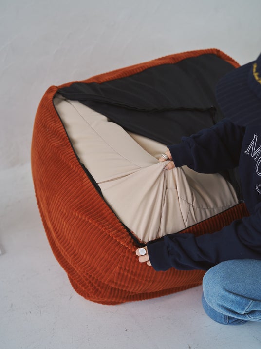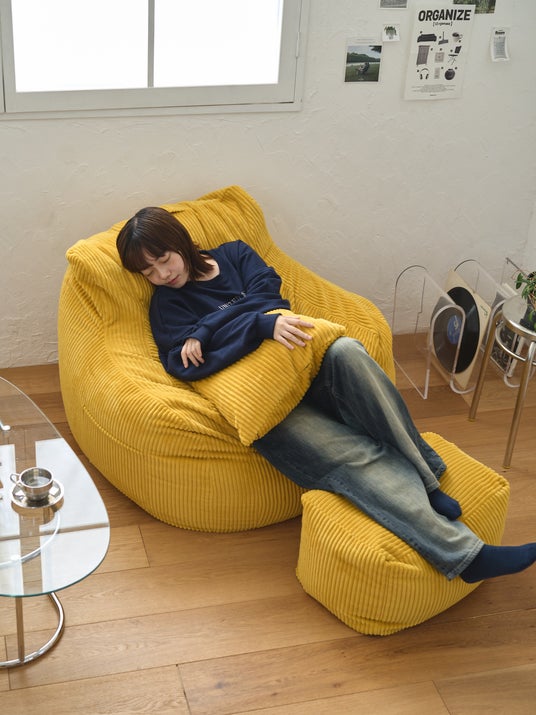体をやさしく包み込むフィット感が人気の「HUGME(ハグミー)」シリーズのビーズソファは、SNSで話題を集め初回発売時には1時間に100台が売れた人気商品です。