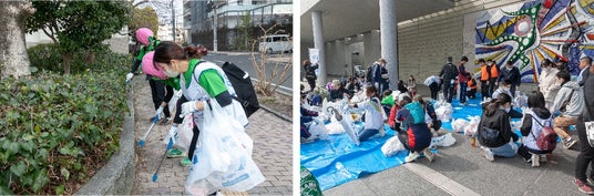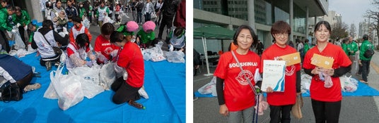 友人同士で参加したチームや学校、職場の仲間同士で参加したチーム、ご家族で参加したチームなど、県内外から多くのチームが参加しました。どのチームも気合十分で、スタート前の作戦タイムでは「どのルートを回れば効率的にごみを拾うことができるか」「役割分担をどうするか」など、意見を出し合いながら各チーム思い思いの作戦を話合っていました。その後、出場者を代表してアサヒ飲料チームの代表者が登壇し選手宣誓を行った後、「CHANGE FOR THE BLUE」の掛け声で全チーム一斉にスタート。60分の激闘を繰り広げました。街には多くの空き缶、たばこの吸い殻、ナイロン袋、家庭ごみなど様々なごみが落ちており、参加者は競技に参加しながら、街に捨てられているごみの多さを改めて実感しているようでした。