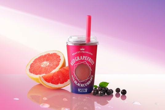 2025年に発売20周年を迎えるドリンクタイプのジュレ「ビューティープリンセス」は、フレーバーやパッケージを一新して登場いたします。これまでの“美味しく飲んで、美しく輝く”というテーマにさらにこだわり、美感成分コラーゲンペプチド1,000mgとヒアルロン酸35mgに加え、新たにスーパー果実由来の美容特許成分「コケモモ+アムラ果実」を配合しました。パッケージは2種類の味の組み合わせを想起させるバイカラーのグラデーションのデザインを採用しています。