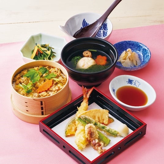 江戸前風深川せいろ御膳 1,449円(税込1,594円)※画像は、春野菜の季節てんぷら・海老しんじょうお吸い物