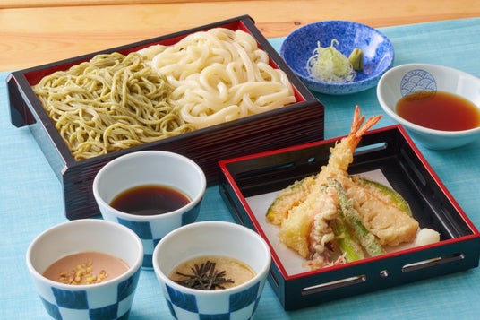 季節天ぷらせいろ[めかぶそば半玉とうどん半玉]