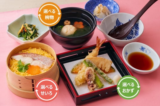 ※1 対象メニュー:選べる春のせいろ和膳、春らんまん天重、春うらら二色合い盛り季節天ぷらせいろ等