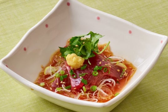“焼津産・枕崎産かつお”を、夢庵ならではのおつまみとしてたたき風にしてご提供。さっぱりとしたポン酢で味付けしました。