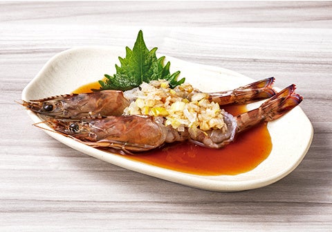 美味しさが詰まった沖縄県産の車海老を紹興酒ベースのタレを使用し、まろやかな味わいの「酔っぱらい海老」風に仕上げました。