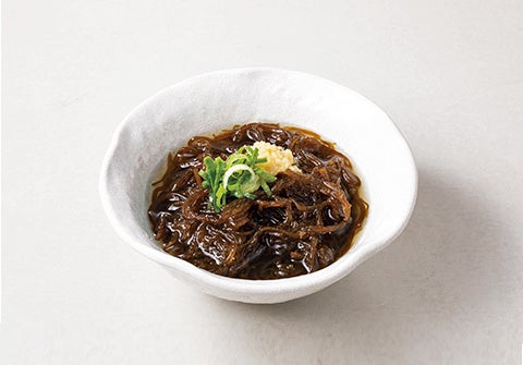 温暖な気候と綺麗な海水で育った沖縄産のもずくは、しっかりとした歯ごたえとぬめりが特徴。オリジナルの三杯酢でさらに風味が際立ちます。