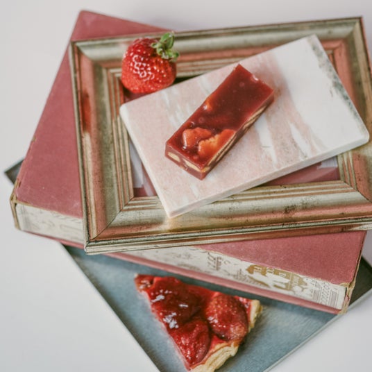 苺タルトを羊羹にしました。あまおうのピュレを贅沢に使い、グラハムビスケットを割り入れた、食感も楽しいケーキのような一品です。