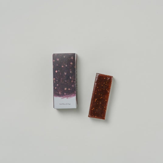 スパイスと赤ワインで無花果のコンポートを作り、そのコンポート液で練ったあんに無花果を閉じ込めた羊羹です。酸味と甘み、そして味わい深さがどこまでも続きます。