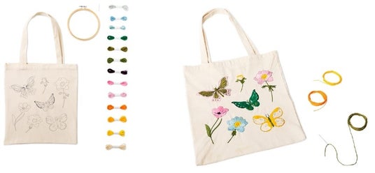 お花や蝶々の絵をバッグに刺繍!オシャレアイテムとして使えるのも◎