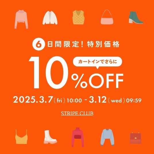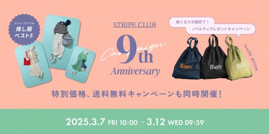 株式会社ストライプインターナショナル(本社:岡山県岡山市、代表取締役社長:川部将士)が運営する自社ECサイト「STRIPE CLUB (ストライプクラブ)」は、3月7日(金)10時より9周年を記念した『9周年祭』を開催いたします。