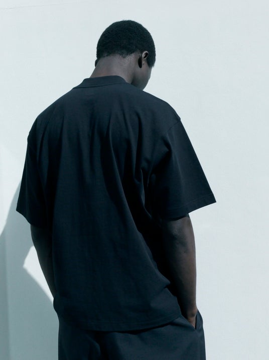 カジュアル過ぎない上品さを纏ったこだわりのTシャツは、後ろ襟ぐりから肩にかけて身生地と共布のテープをあしらったタコバインダー仕様の本格派。さらに袖と裾はクラシカルなTシャツの王道ディテールであるブラインドステッチ(天地引き)を採用。