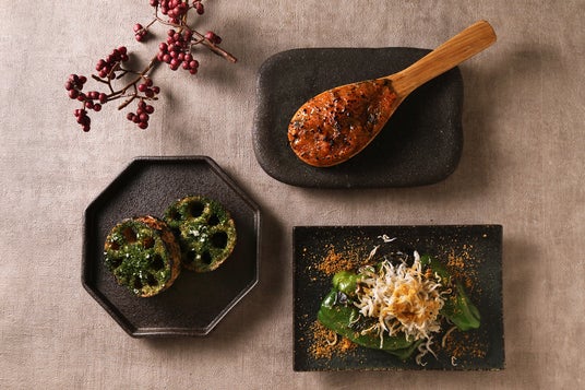 海苔塩れんこん・炙りピーマンとしらす からすみがけ・黒十の焼き味噌