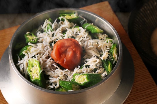梅しらすオクラと自然薯の釜飯