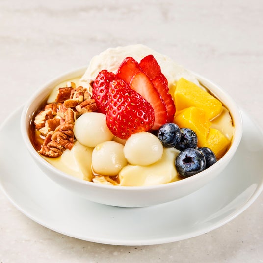 ・フルーツ豆花990円:苺やマンゴーなどのフルーツが彩りを添え、さっぱりとした風味が魅力