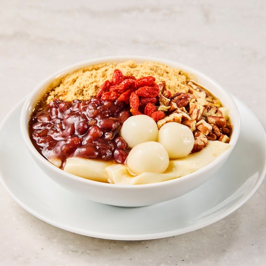 ・薬膳豆花 935円:クコの実など薬膳食材ときなこやあんこ・白玉の優しい味わいが特徴