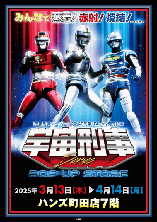1980年代にテレビ朝日系列で放映され絶大な人気を博した、東映のまったく新しい特撮ヒーロー『宇宙刑事シリーズ』!誰もが真似した変身プロセス、誰もが歌った熱い主題歌、そして誰もが学んだゼロコンマ以下の概念!バビロス号からプラズマブルーエネルギーを浴びて、3月13日(木)より『宇宙刑事シリーズPOP UP STORE in 町田』の開催が決定したのだ!(ここまで1ミリ秒)