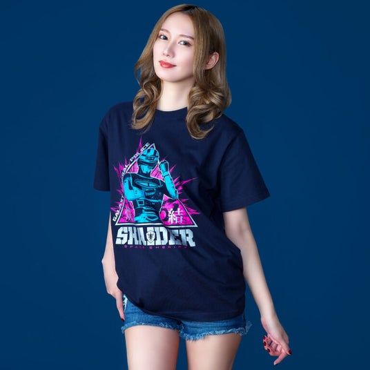 誰だ!蒼いボディのTシャツに!誰だ!プリントされているのは?宇宙刑事第3の男、シャイダーがTシャツになって登場!蒼のボディに焼結直後のシャイダーの勇姿がインパクト絶大なカラーリングで映える!80年代らしいレトロフューチャーなデザインがおしゃれなファン必携の1枚!