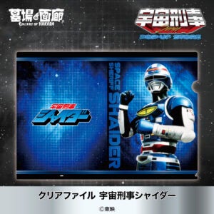 宇宙刑事ギャバン、シャリバン、シャイダーそれぞれの勇姿がプリントされたド迫力のクリアファイルが登場!裏面のロゴ部分はファイリングした資料が透けて見える特別なデザイン。キミの大事な書類を蒸着!赤射!焼結!させてプロテクト!学校や職場など様々なシーンで一目置かれる存在感!