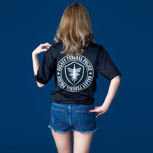 銀河連邦警察の装備品?!宇宙刑事ワークシャツが登場!タフさと誠実さを感じるシンプルなシルエットのワークシャツの胸元に輝く、SPACE SERIFFの文字と銀河連邦警察のエンブレム。背面にはビッグサイズのエムブレムがインパクト大!わかる人にだけわかる、大人の洒落たファッションアイテムだ。