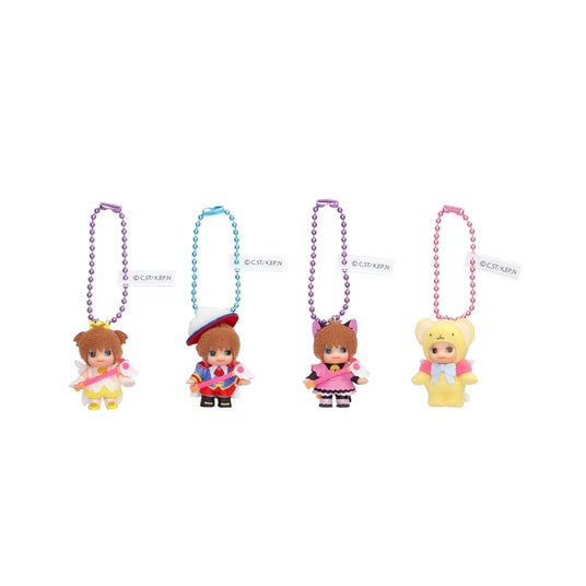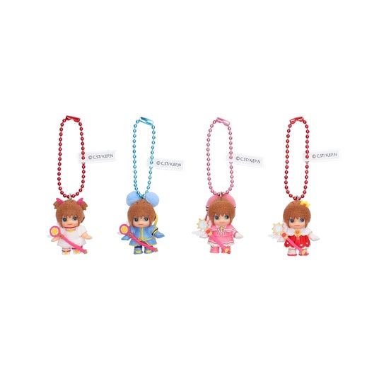 コスチュームやケロちゃんを着用したキューピーは、全8種のラインアップ。細部まで再現したコスチュームと、ミニチュア化された杖がかわいらしいデザインです。各コスチュームに合わせたカラーのボールチェーンが付属しており、お手持ちのバッグやポーチに付けて一緒にお出かけをお楽しみいただけます。