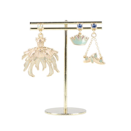 作中に登場する「封印の杖」「星の杖」「夢の杖」を、日常使いしやすいピアスに落とし込みました。ストーンの上品なデザインに加え、杖の持ち手部分がゆれ動く仕様になっており、お顔周りを華やかにしてくれます。