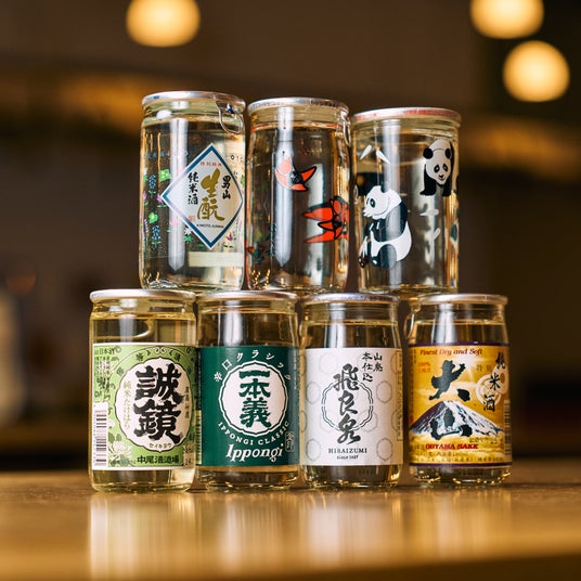 「カップ酒7種」各880円日本各地のカップ酒7種類を冷から燗までお楽しみいただけます。