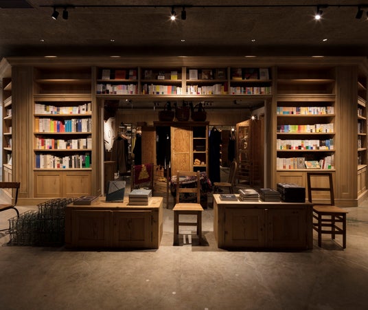 ヒビヤ セントラル マーケットを象徴する店内中央に並んだ10本の大きな本棚。
