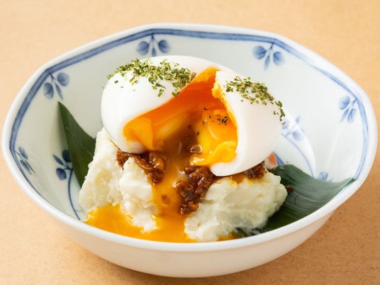 鶏屋の悪魔ポテサラ ~鶏味噌と半熟たまご乗せ~480円(税込)