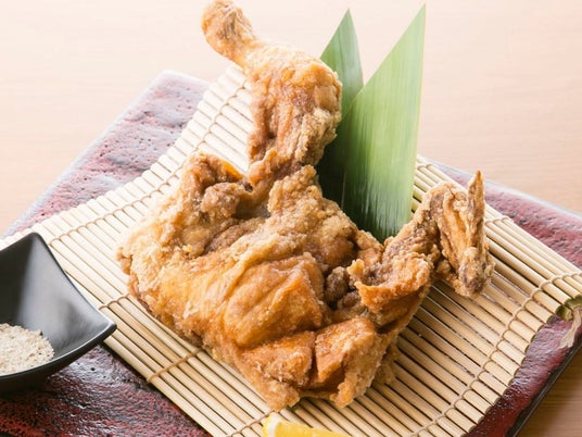 半身丸ごと揚げられているので、おいしいところを余すことなく満喫できる創業当時からの名物メニュー。すべての部位を一度に味わうことができます。