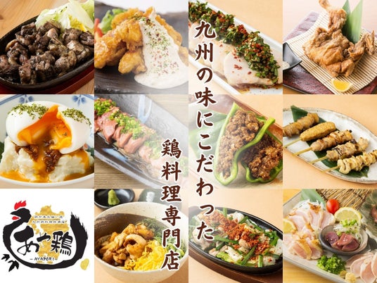 九州各県に展開している、名物ひな鶏の半身唐揚げやこだわりの鶏刺しが自慢の鶏料理居酒屋『あや鶏』が、宮崎市大塚町にオープンいたします。