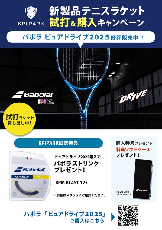 <KPIPARK>バボラ・ヨネックス・ヘッド・ダンロップ新作ラケット試打サービス実施中&購入で特典プレゼントキャンペーンを開催