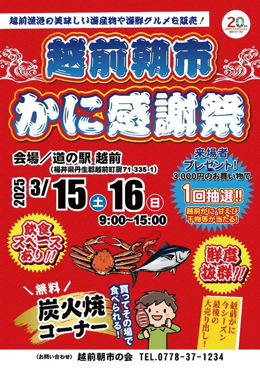 【福井県越前町】3月20日で越前がに漁終了!今シーズン最後の大売り出し「越前朝市・かに感謝祭2025」を3月15日(土)・16日(日)に道の駅越前で開催!