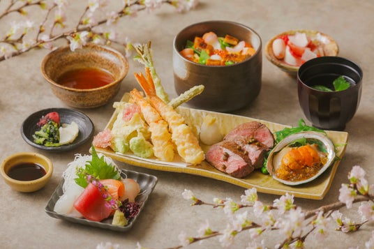 黒毛和牛のステーキや鮑の姿煮の他、ちらし寿司や蛤のお吸い物など、シェフが厳選した日本の春ならではの食材を、彩り華やかにGOZENスタイルでご用意いたします。ロビーラウンジに設えた美しい桜のセンターピースを愛でながら、春をイメージした季節のカクテルとご一緒に口福なひとときをお愉しみください。