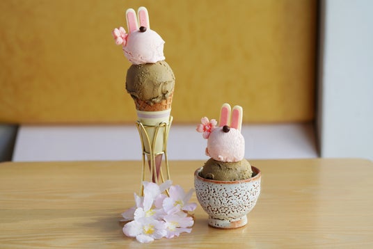 ●「桜うさぎジェラート」 単品 ¥820(税込) / お茶セット ¥1,220(税込)単品はテイクアウト可