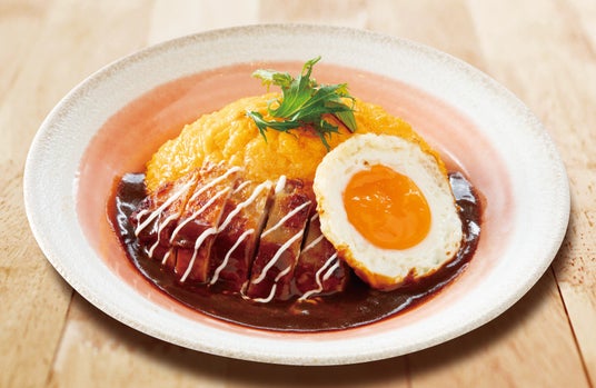 ■ 卵のこだわりオリジナル卵「幸卵」は、お客さまの「健康」「安心」 「安全」を考え、環境の良い鶏舎で愛情を持って育てられた元気で健康な鶏から産まれた卵。 「卵黄」の色が濃い「コク」「甘味」がある濃厚な味わいが特徴です。この「幸卵」の美味しさを引き出す焼き方「ふわふわトロトロ」のオムライスに仕上げます。