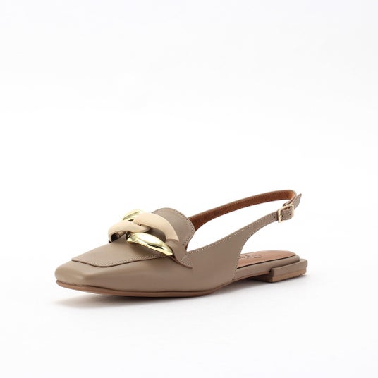 つま先の肌見せを控えつつ、かかとはカバーし、