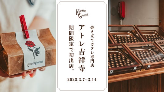 東京・蔵前にあるSNSで話題の焼き立てカヌレ専門店「KURAMAE CANNELE(クラマエカヌレ)」(運営:CLASSIC INC.、代表取締役 : 萱場俊克、本社 : 東京都渋谷区)は、2025年3月7日(金)~3月14日(金)にアトレ吉祥寺にて催事を実施いたします。蔵前の工房で焼き上げた「クラマエ・カヌレ」とホワイトデー期間の限定商品「チョコチップフィナンシェ」をその日のうちにお届けし、販売いたします。1日で3,000個販売したこともある人気商品「クラマエ・カヌレ」。ぜひこの機会にお楽しみください。