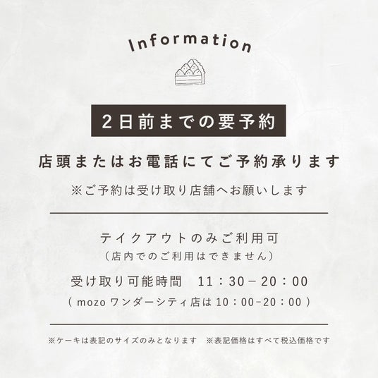 ご予約や詳細につきましては、店頭またはお電話まで受け付けております。皆さまの大切な瞬間に、当店のケーキが彩りを添えられることを心より願っております。