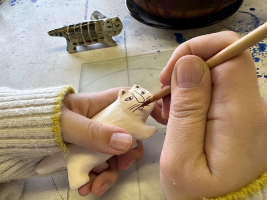 日本各地の陶磁器の産地を旅する『にっぽんのリサ猫』シリーズ。最初を飾るのは、栃木県の益子焼の猫です。