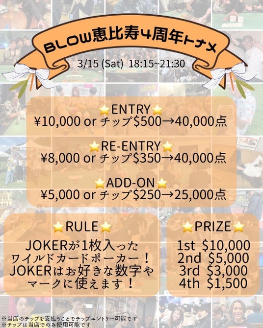 4周年目も引き続き、『CASINO BLOW 恵比寿店』を宜しくお願い致します。