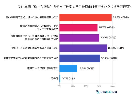 これらの疑問を明らかにするため、2025年2月12日に【SEO対策】で検索順位No.1を獲得した(注1)ランクエスト(https://rank-quest.jp/column/column/how-to-seo/ )は、50代の男女150名を対象に「単語検索vs.複数ワード検索の実態」に関する独自調査を実施しました。