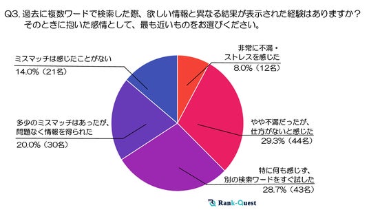 調査結果3.:過去に複数ワードで検索した際、欲しい情報と異なる結果が表示された経験はありますか? そのときに抱いた感情として、最も近いものをお選びください。