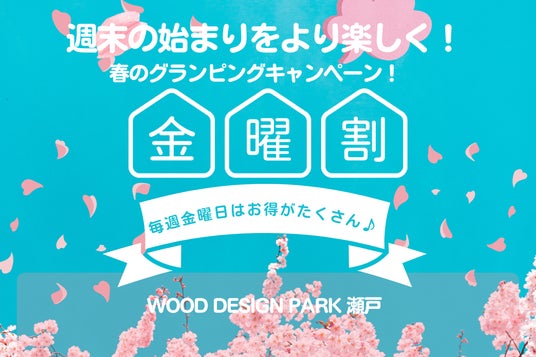 ジブリパークから車で3分の愛知県瀬戸市のグランピング施設「ウッドデザインパーク瀬戸」では、2025年4月18日までの毎週金曜日限定で、お得に楽しめる「Happy Fridayクーポン」の提供を開始。