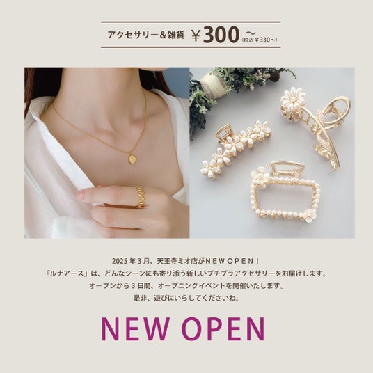 3/21(金)330円(税込)からのアクセサリーブランド「LUNA EARTH」天王寺ミオにオープン